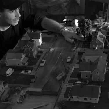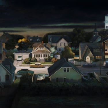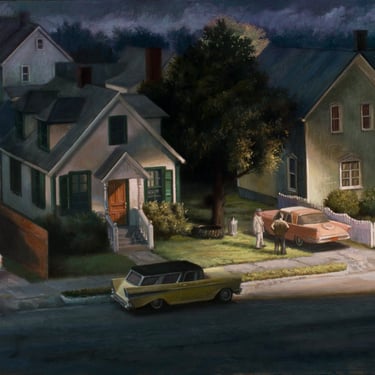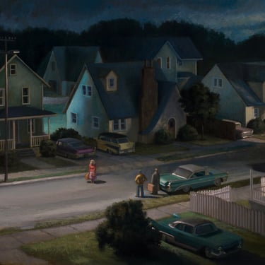 Alberto Ortega est un artiste espagnol qui vit aux Etats-Unis depuis 2008. Pour son travail, Il construit des dioramas extrêmement détaillés de banlieues américaines des années 50 qu'il va ensuite mettre en scène à la manière d'un réalisateur de cinéma. Il peint ses tableaux en utilisant ces maquettes pour mettre en valeur chaque lumière, angle et personnage avec soin. Ses œuvres évoquent d'autres artistes, tels que le peintre Edward Hopper ou encore le photographe Gregory Crewdson. Il explique, dans un interview, être influencé par la peinture de paysage néerlandaise du 17ème siècle. Il en utilise d'ailleurs certains pigments.