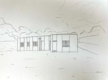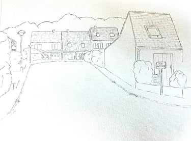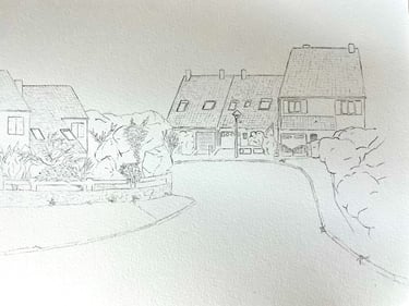 Série de dessins d'après photographies contemporaines du lotissement Gesvrine sur la commune de la Chapelle sur Erdre construit entre 1974 et 1984. Un programme immobilier du Groupe Maison Familiale qui comprenait la livraison de 857 maisons individuelles, un centre commercial, une maison de santé, deux groupes scolaires et une zone industrielle en périphérie.