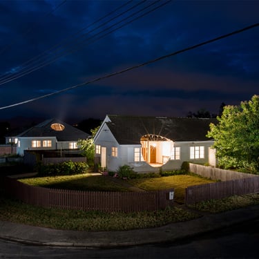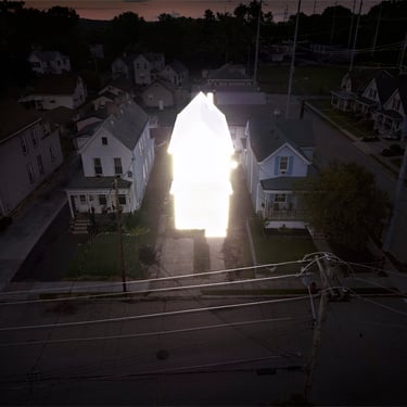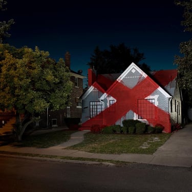 The house is the main subject of the works of the Australian artist Ian Strange. Through his monumental installations, he paints, cuts and stages in a spectacular way these places of life abandoned or in the process of rehabilitation. He questions his past as a child of the suburban, but also prolongs the history of these neighborhoods. His Suburban series, have been initiated in 2011 after the subprime crisis, some of the houses of the project had been seized and demolished.