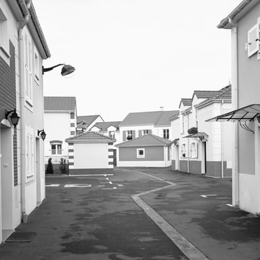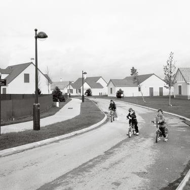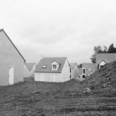 Between 1997 and 2000, the German photographer Jürgen Nefzger tells how a new city (Marne-la-Vallée) came into being and how a landscape was transformed by the installation of the Eurodisney park. The series 'Aux portes du royaume' testifies to the evolutions of the earth and its transformation by man. Nefzger is fascinated by these artificial landscapes, which are present in practically all his works. The works Hexagone - Le paysage fabriqué and Hexagone - Le paysage consommé bring together a selection of particularly interesting residences and commissions.