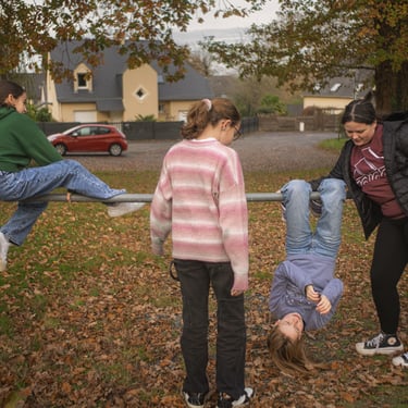 Lorsque qu'elle évoque sa série Les Mercredis Sauvages, la photographe Marianne Barthélemy dit avoir voulu explorer le potentiel dramatique du lotissement français. Nous y suivons un groupe de jeunes filles à travers certains des moments qui construisent l'enfance. Les premières boom, les cabanes, les balades à vélo sont autant de souvenirs précieux qui sont ici remis en scène comme pour pouvoir les revivre à l'infini.