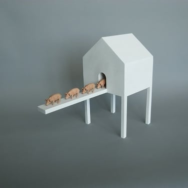 House with Four Exiting Piglets
