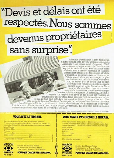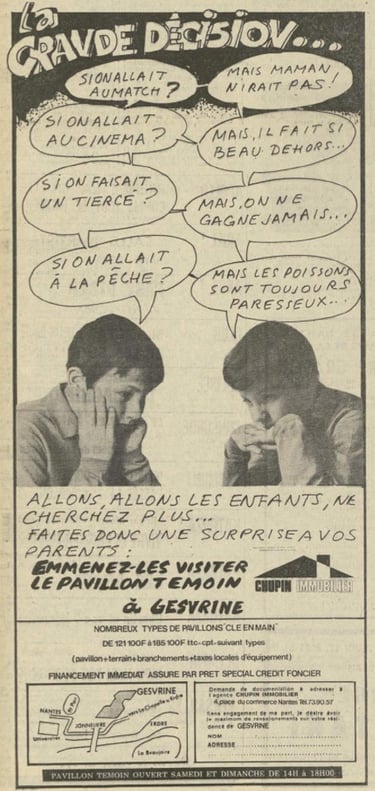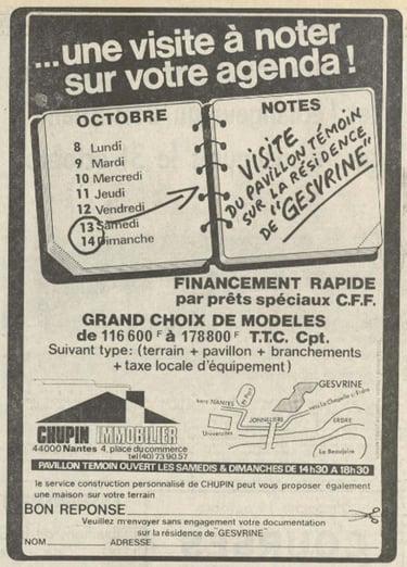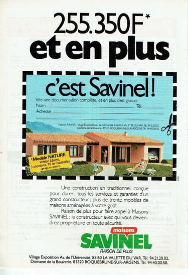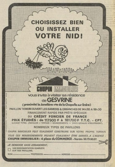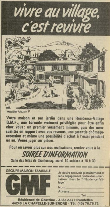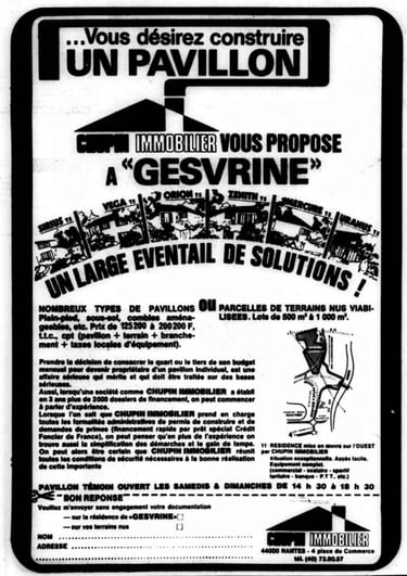 The success of a real estate project often involves a major promotional campaign in the regional daily press (black and white) and even national (color). These two galleries contain some of these ads. It will talk about the happiness of joining a community at the best price, in a secure environment and guaranteed access to quality services.